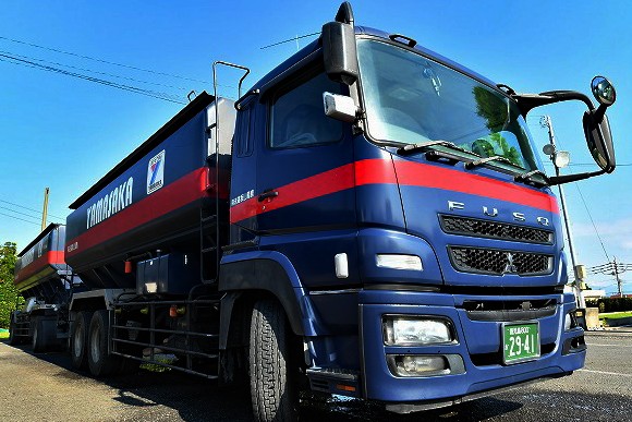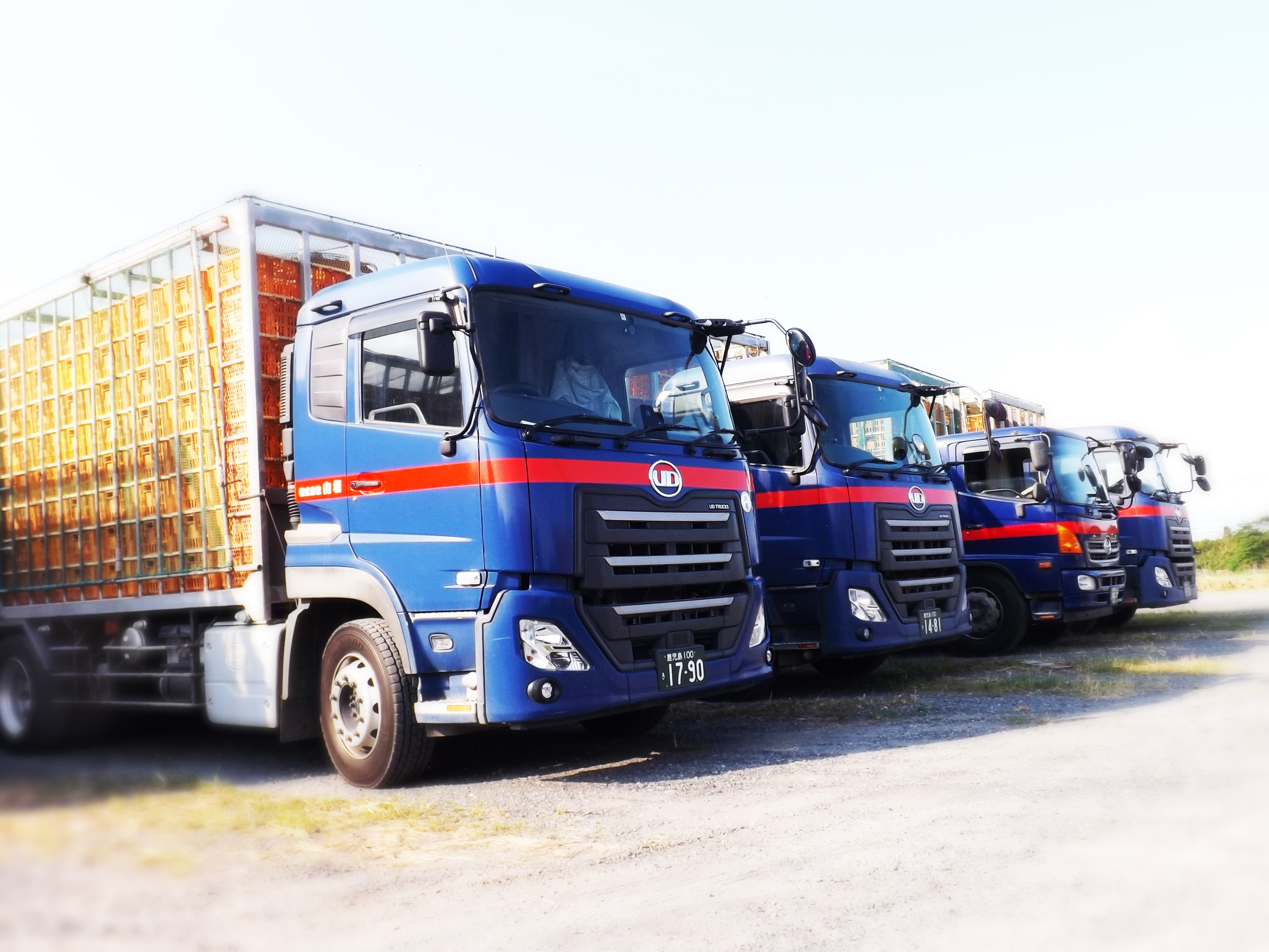 生鳥輸送車、飼料運搬車(バルク車トレーラー)、産業廃棄物運搬ダンプ、ひよこ運搬車(庫内冷暖房車)、重機運搬車(キャリアカー)、平ボディーなど、㈱山坂では約80台の大型、中型トラックを保有しています。これらのトラックは大隅半島を中心に地場輸送で日々活躍しております。